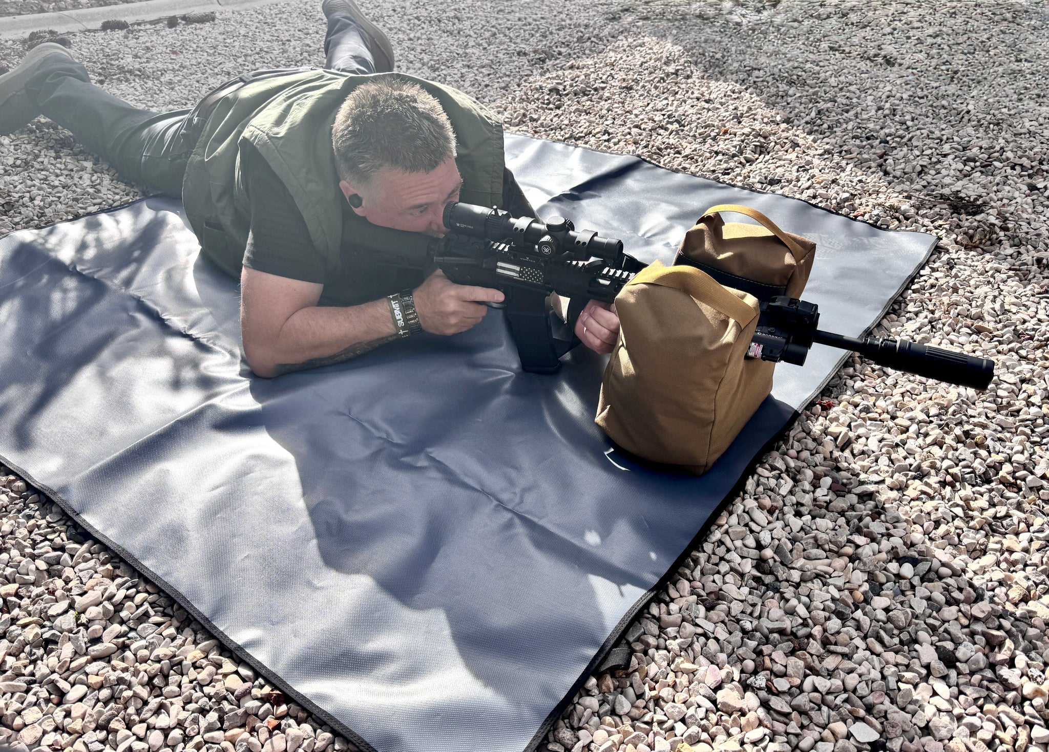 Made from the same tough, American-sewn materials we use in our tactical gear, this mat gives you a durable, weather-resistant shooting platform that won’t quit when the gravel, dirt, or mud start grinding.